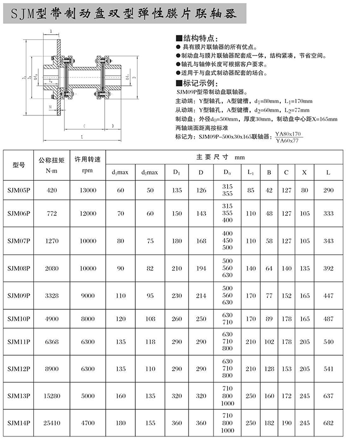 SJM型帶制動盤雙型彈性膜片聯(lián)軸器