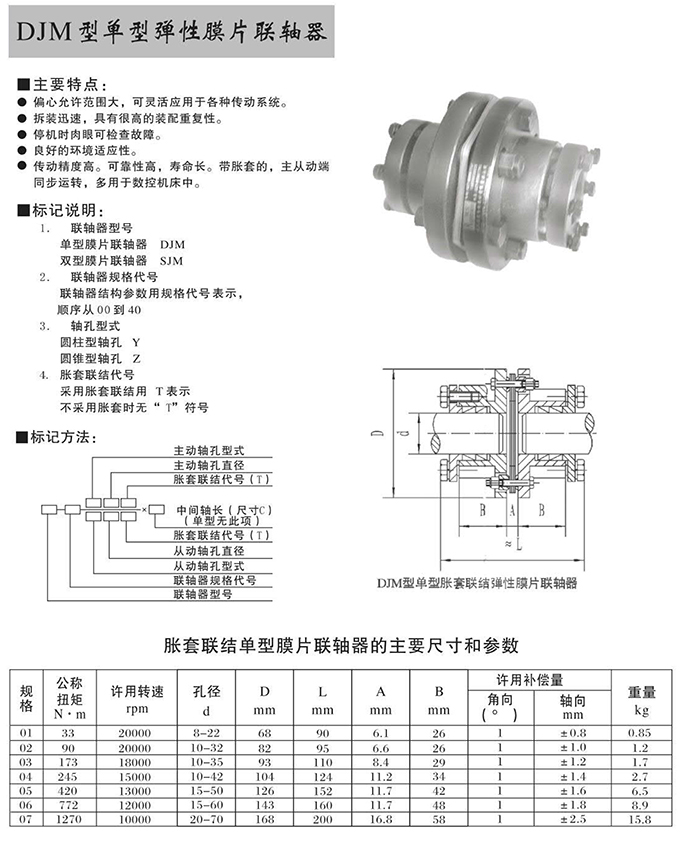 瑞安市寶德隆機(jī)械配件有限公司提供DJM型單型彈性膜片聯(lián)軸器具有拆裝方便,快速安裝等特點(diǎn),廣泛用于連接/固定輪轂孔和零件的軸,例如齒輪,錐齒輪,鏈輪,葉輪,凸輪,皮帶輪和飛輪等軸的聯(lián)結(jié)固定,咨詢電話:18906872378