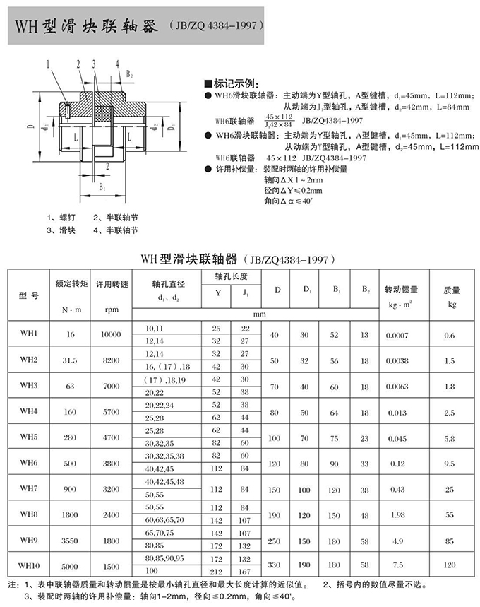 瑞安市寶德隆機械配件有限公司提供WH型滑塊聯軸器具有拆裝方便,快速安裝等特點,廣泛用于連接/固定輪轂孔和零件的軸,例如齒輪,錐齒輪,鏈輪,葉輪,凸輪,皮帶輪和飛輪等軸的聯結固定,咨詢電話:18906872378