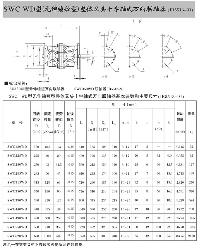 SWC WD型(無(wú)伸縮短型)整體叉頭十字軸式萬(wàn)向聯(lián)軸器