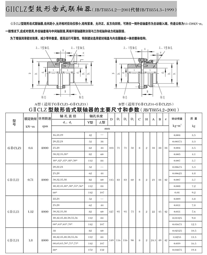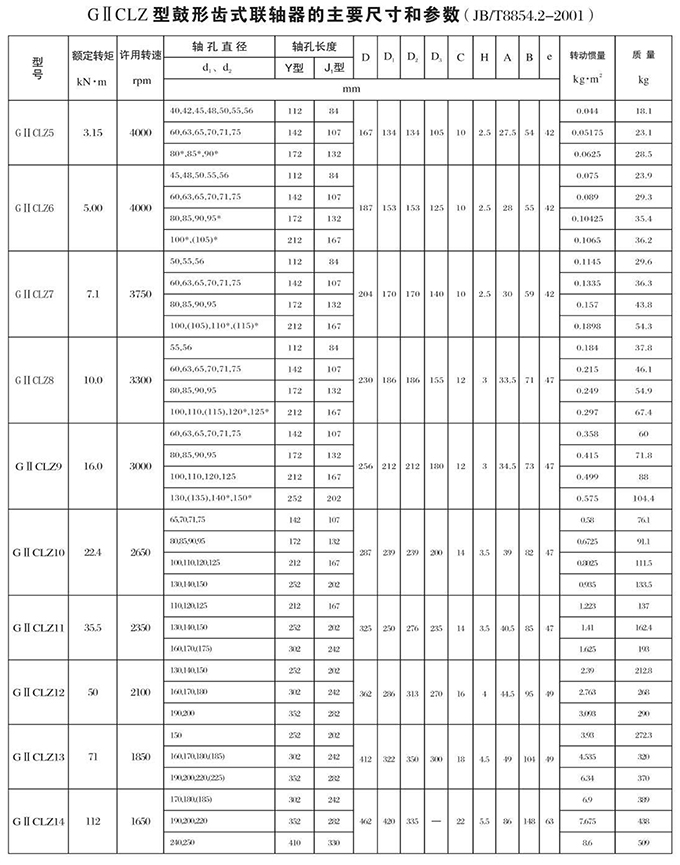 瑞安市寶德隆機(jī)械配件有限公司提供GⅡCLZ型鼓形齒式聯(lián)軸器具有拆裝方便,快速安裝等特點,廣泛用于連接/固定輪轂孔和零件的軸,例如齒輪,錐齒輪,鏈輪,葉輪,凸輪,皮帶輪和飛輪等軸的聯(lián)結(jié)固定,咨詢電話:18906872378