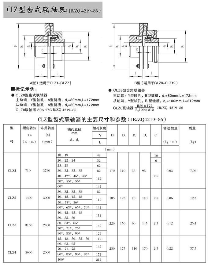 瑞安市寶德隆機(jī)械配件有限公司提供CLZ型齒式聯(lián)軸器具有拆裝方便,快速安裝等特點(diǎn),廣泛用于連接/固定輪轂孔和零件的軸,例如齒輪,錐齒輪,鏈輪,葉輪,凸輪,皮帶輪和飛輪等軸的聯(lián)結(jié)固定,咨詢(xún)電話:18906872378