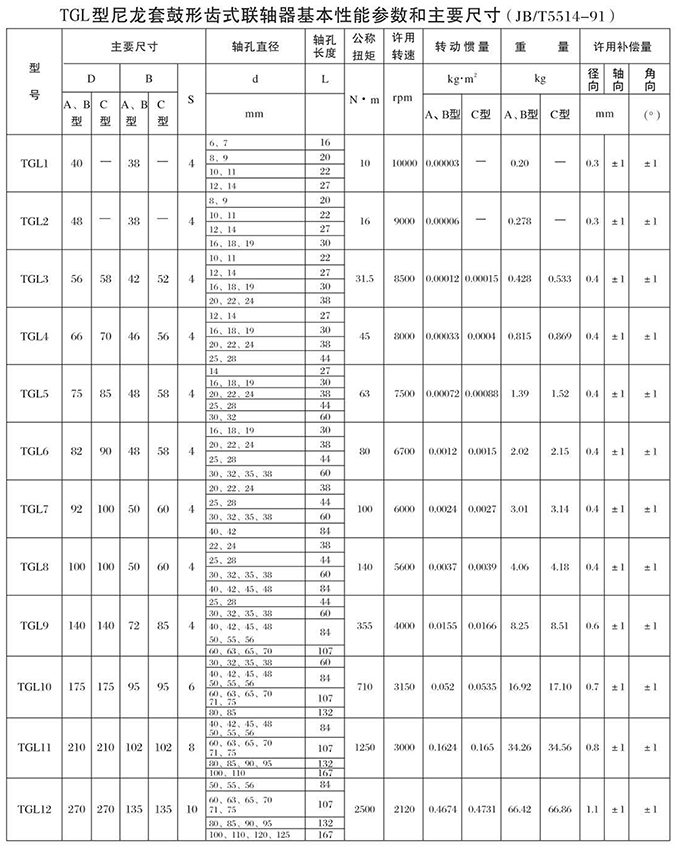 TGL型尼龍?zhí)坠男锡X式聯(lián)軸器